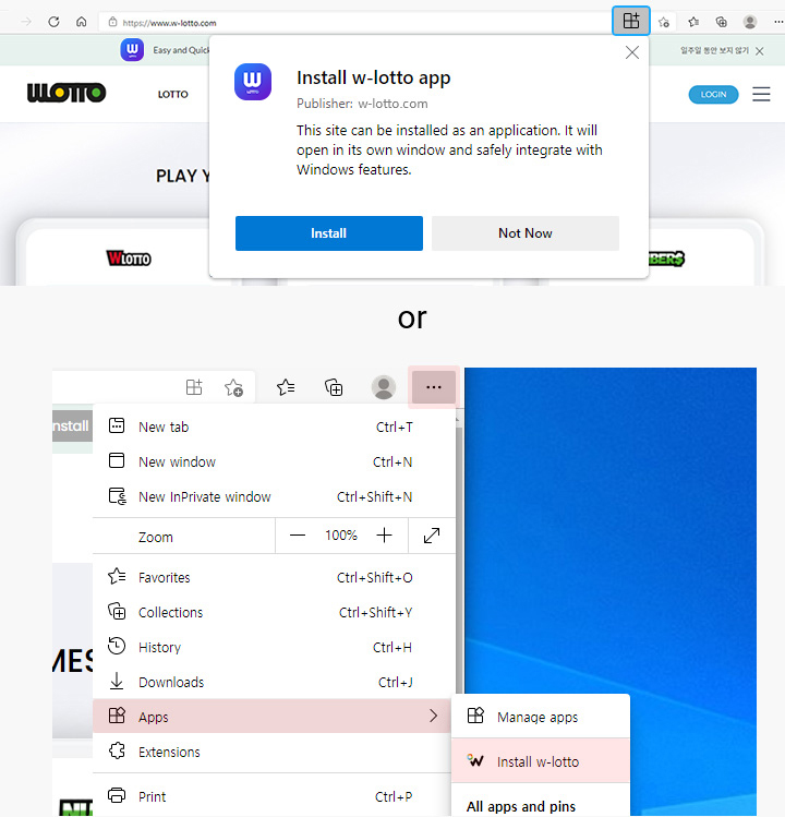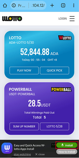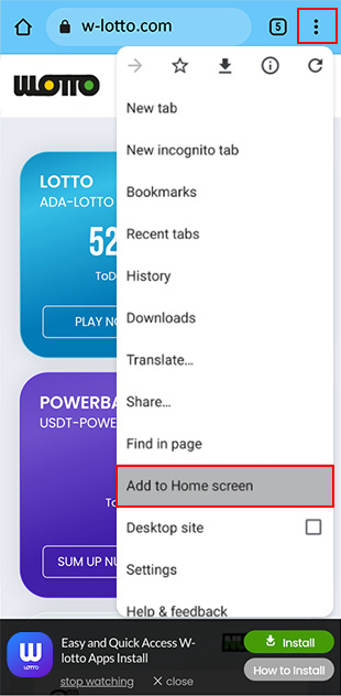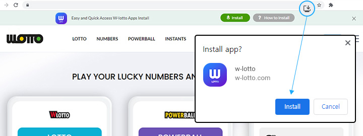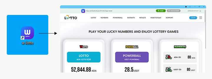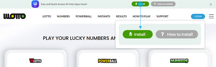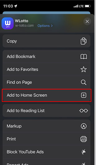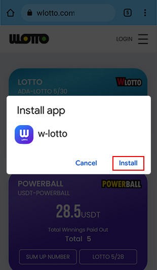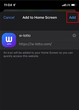 Upon completion, the W-LOTTO Web App icon will appear on the home screen.