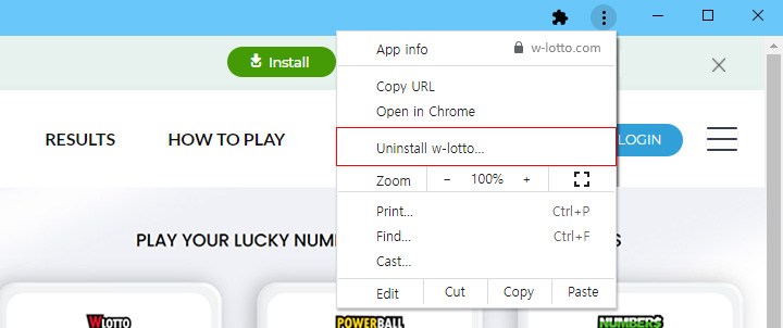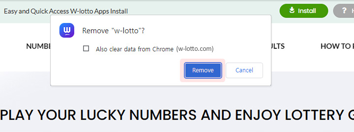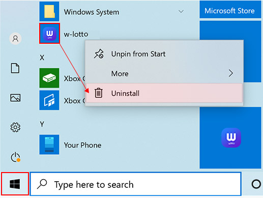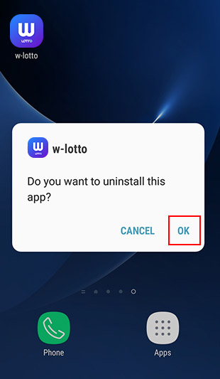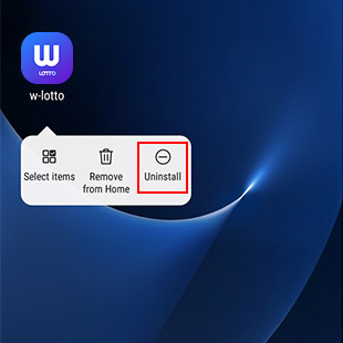 Click and hold W-LOTTO Web App icon and click “Uninstall”