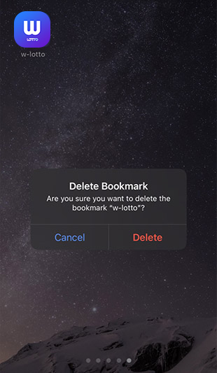 Click and hold W-LOTTO Web App icon and click “Delete”